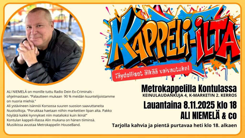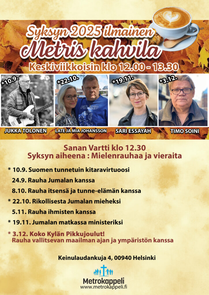 12.00 Metris-kahvio B-salissa. Vieraina: Mia ja Lauri “Late” Johansson.